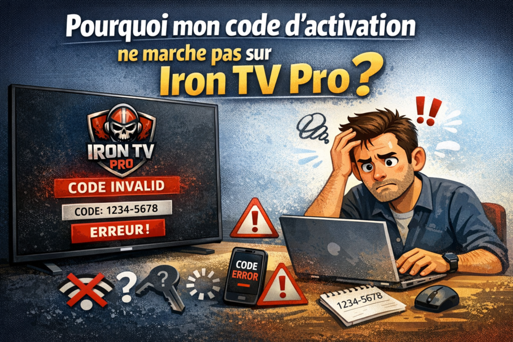 Vous venez de recevoir votre code d’activation Iron TV Pro, vous l’entrez dans votre application… et rien ne se passe. Pas de panique : dans plus de 90 % des cas, le problème vient d’une erreur de saisie ou d’un réglage simple à corriger. Voici les 7 causes les plus fréquentes et comment les résoudre immédiatement.